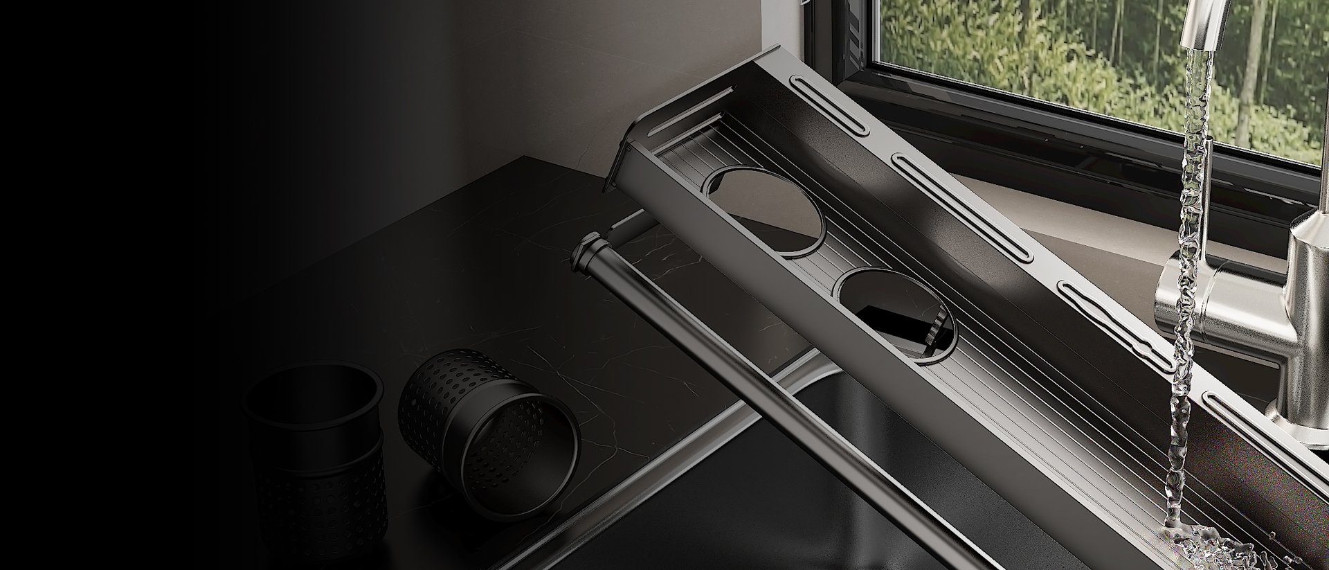 Thoughtful Design for Everyday EaseWith R10 rounded corners and X-shaped drainage lines, water flows quickly with no residue. The dual-layer track system allows accessories like colanders, cutting boards, and inner basins to slide freely, adapting to every stage of food prep and cleanup.Intelligent