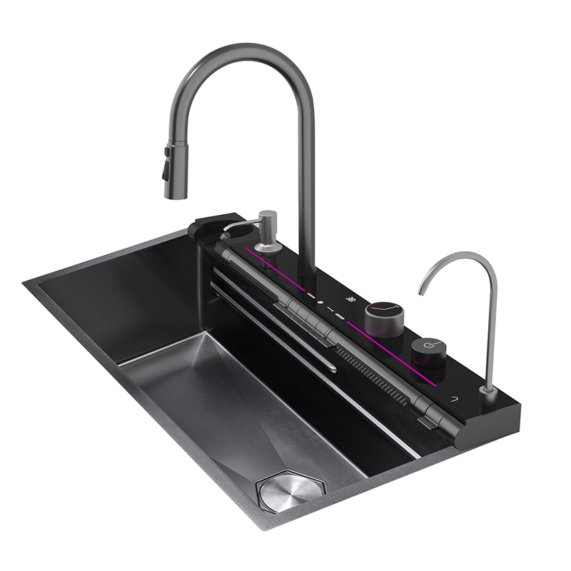 In today’s modern kitchen, efficiency meets elegance with the 7-Button Rainfall Kitchen Sink — engineered with premium materials, smart design, and multifunctional features to elevate your daily workflow.Premium 304 Stainless SteelCrafted from food-grade 304 stainless steel, this sink offers superio